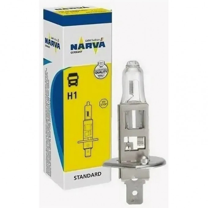 Стандартная автомобильная лампа H1 24V 70W от Narva. Чаще всего, именно такие лампы устанавливаются на заводе. Подходит водителям, которые не устанавливают высоких требований к освещению.